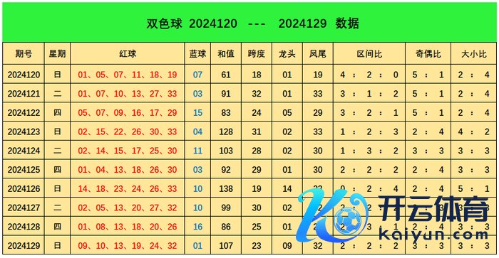 上期回来:双色球第2024129期开出奖号:红球09、10、13、19、24、32;蓝球01世界杯体育信息,其中红球三区比为:2:2:2,奇偶比:3:3,大小比为:3:3,蓝球开出1路号码01。