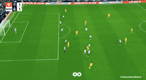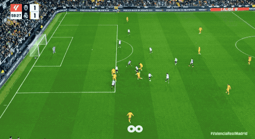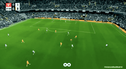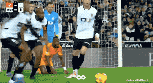 第27分钟,罗德里戈在前场拼抢叛逆中倒地,瓦伦西亚速即发动快速反击,皇马旧将杜罗靠近旧主,补射破门。